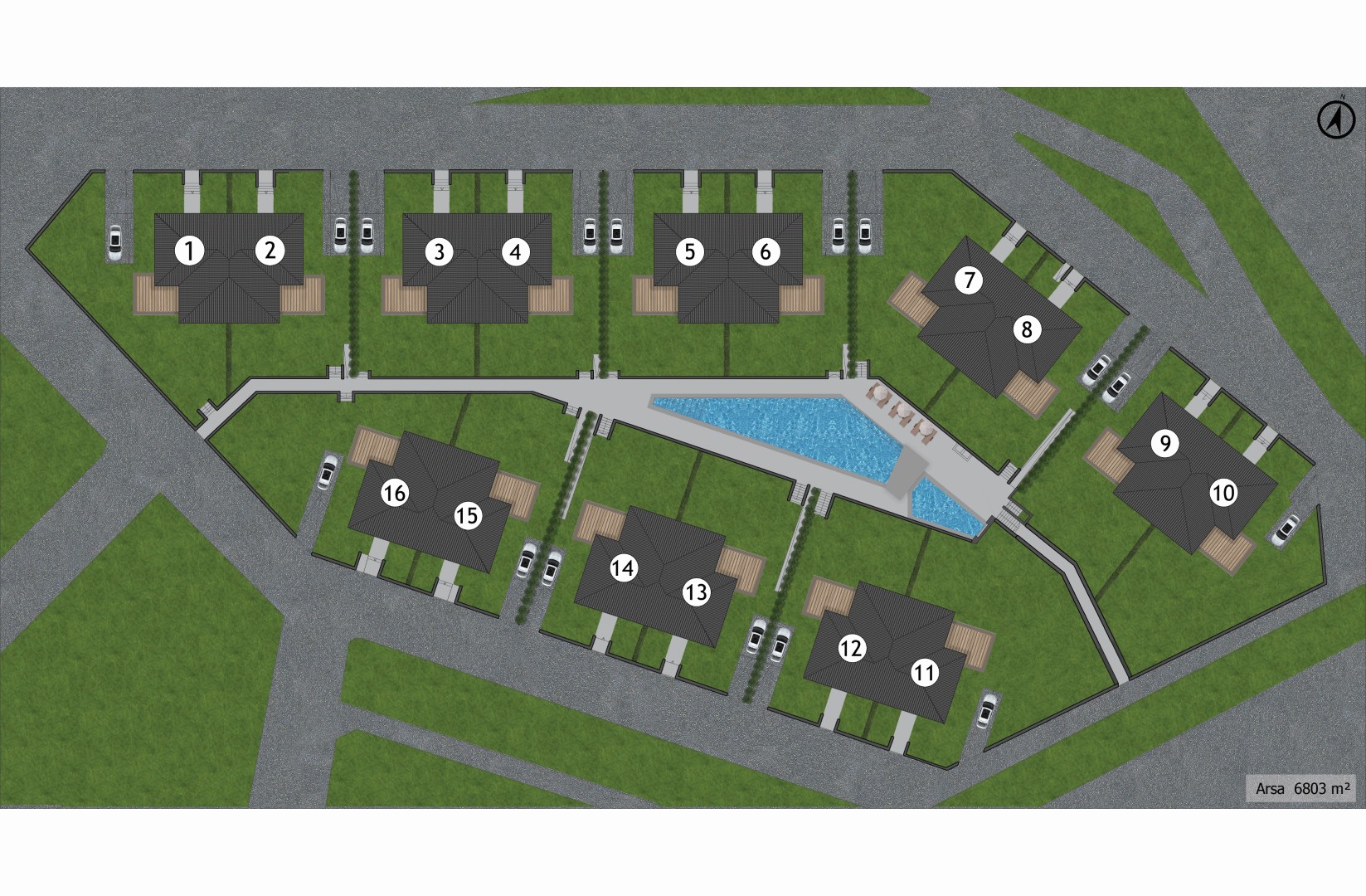 Gardenia 16 projesi 4+1 olarak toplamda 16 villadan oluşuyor. Site geniş bahçelerinin yanı sıra, açık yüzme havuzu, 24 saat güvenlik hizmeti, her villanın kendisine ait açık otoparkı ve profesyonel site yönetimi bulunuyor.